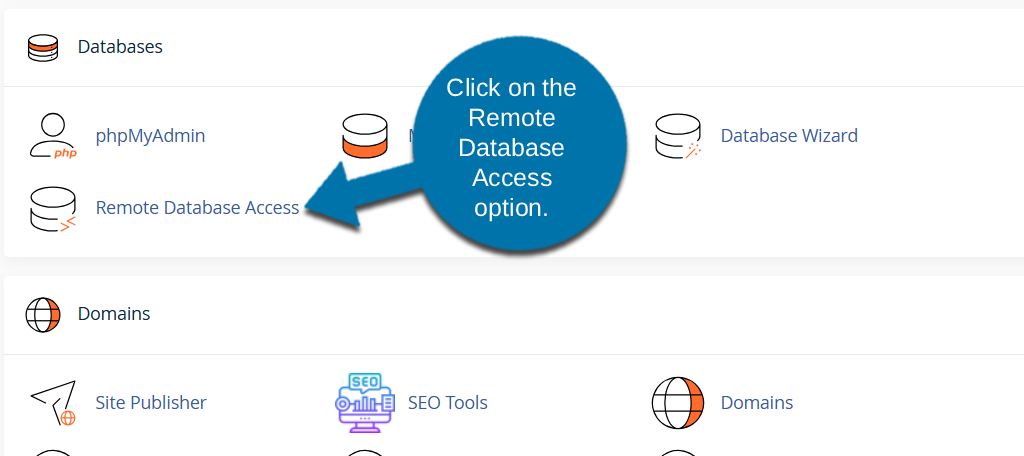 Log in to GreenGeeks and access your cPanel. Once inside, locate the Databases section and click on the Remote Database Access option.