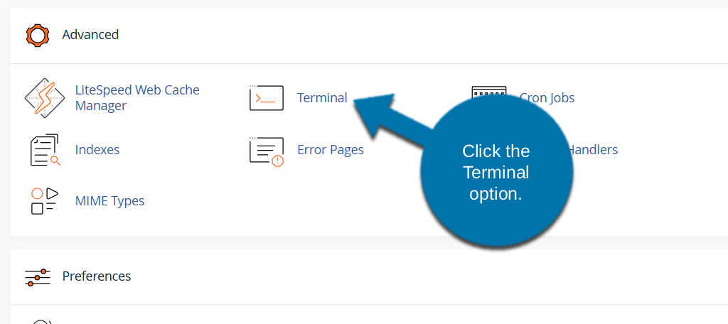 Log in to GreenGeeks and access your cPanel. Locate the Advanced section, and click the Terminal option.