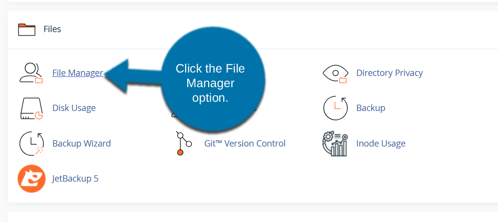 To access the File Manager, log in to GreenGeeks and access your cPanel. Locate the Files section, and click the File Manager option.
