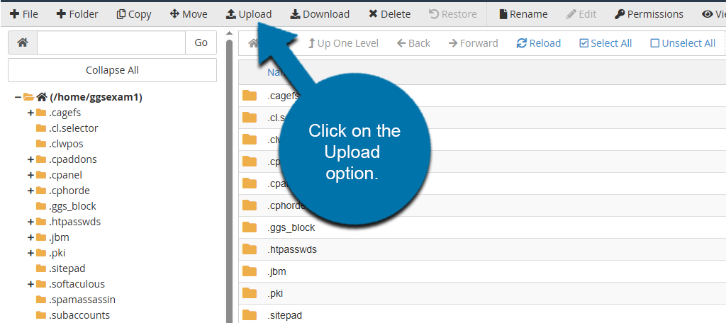 The file will be added to your computer’s download folder. With that complete, all you need to do is go to your new cPanel account and upload the mail.zip file you just downloaded. To do so, go to the File Manager and click on the Upload option on the toolbar.