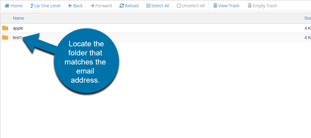Then locate the folder for the email address itself within that domain.