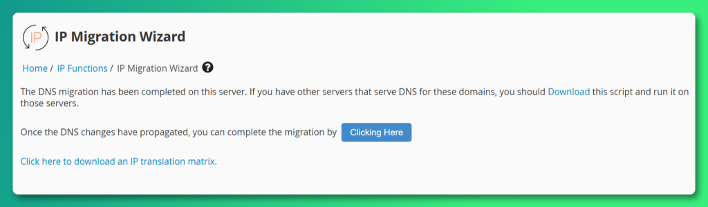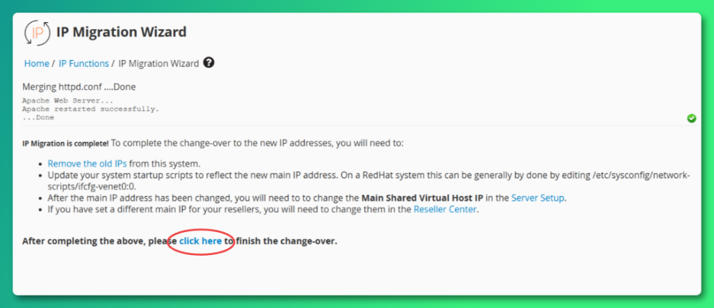 Step 9: Use the “click here” link to finalize the IP Migration Wizard.