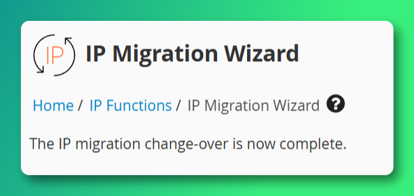 The IP Migration process is now complete!