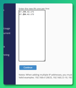 Step 2: Enter the new IP Address(es) in the box provided.