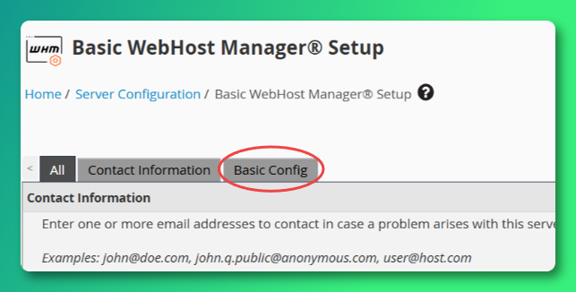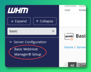 Step 11: In the WHM Menu, select Basic WebHost Manager® Setup