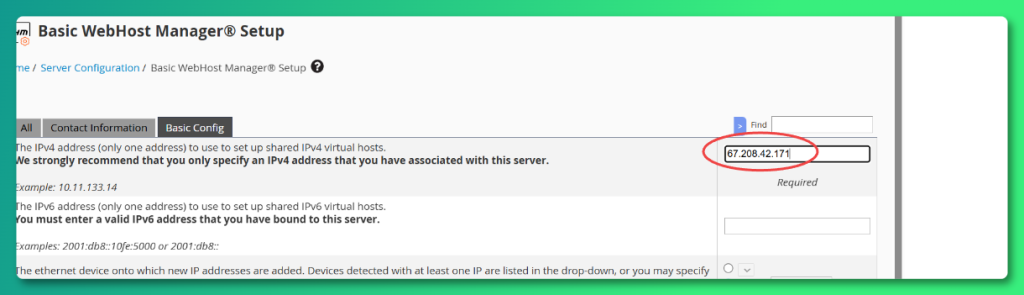 Step 13: Locate the IPv4 address in the Basic Config, and update it to the new Primary IP address.